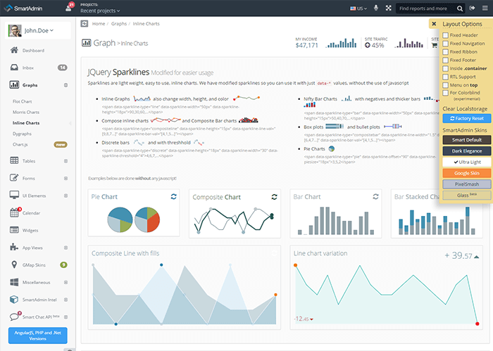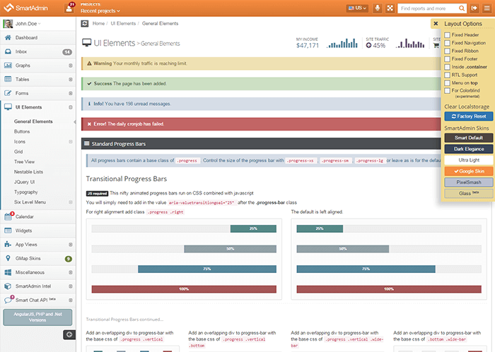 A StarterKit 7 gyönyörű beépített témával érkezik, hogy mindenki megtalálja a saját stílusát. Felhasználónként eltérő témák is beállíthatók. Próbálja ki a témákat a jobb oldali forgó fogaskerekekre kattintva!